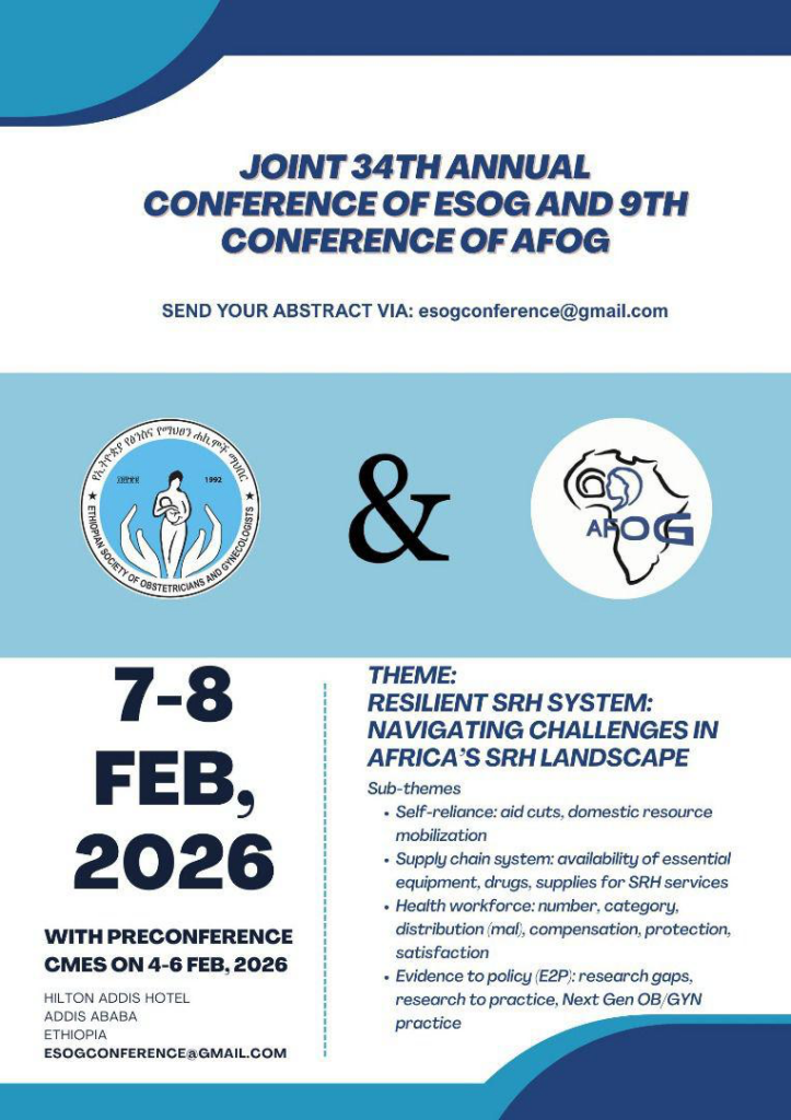 The African Federation of Obstetrics and Gynaecology (UK) is pleased to confirm its participation in the forthcoming Joint 34th Annual Conference of the Ethiopian Society of Obstetricians and Gynaecologists and the 9th Conference of the African Federation of Obstetrics and Gynaecology, to be held in Addis Ababa on 7–8 February 2026.
